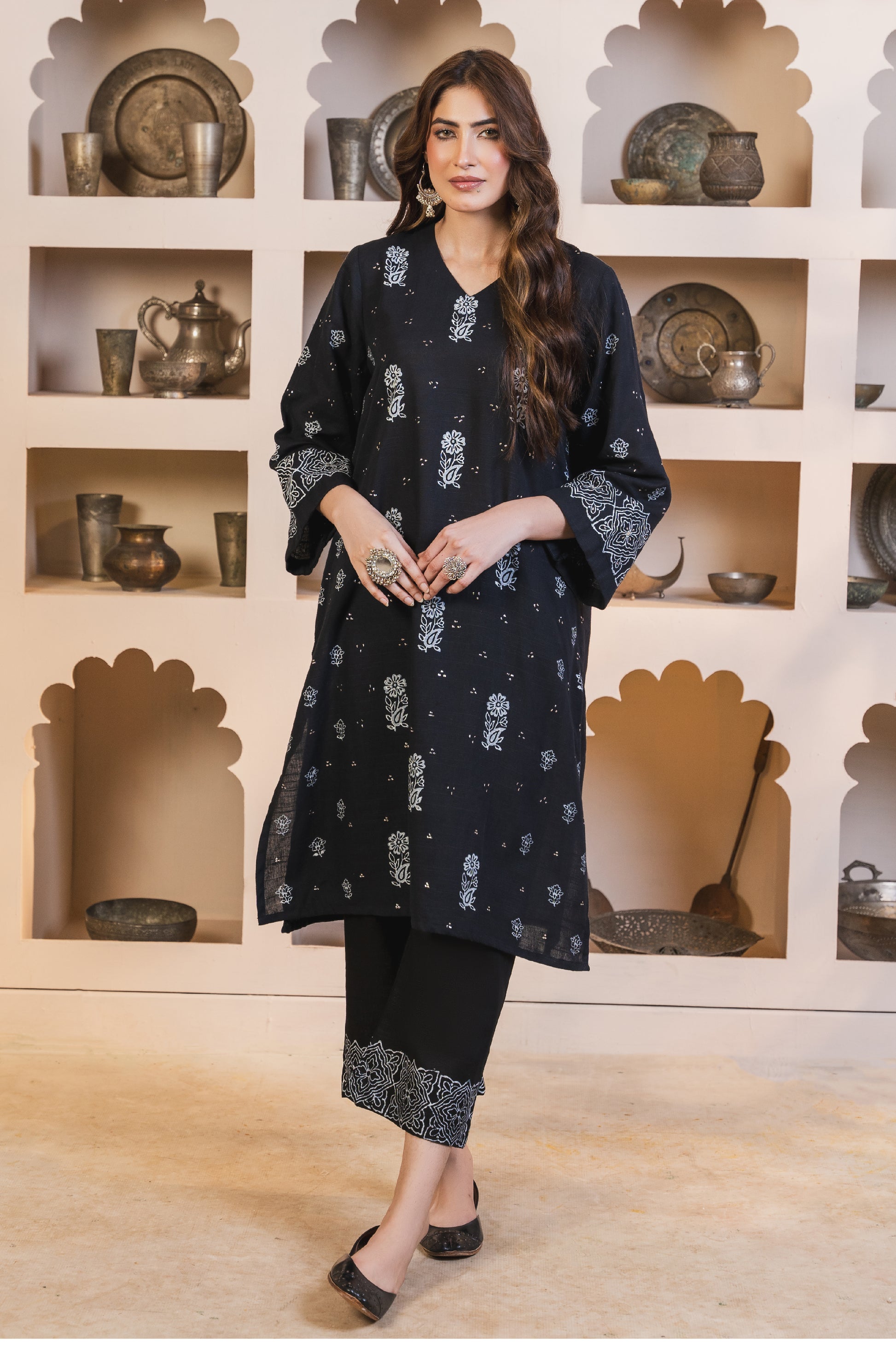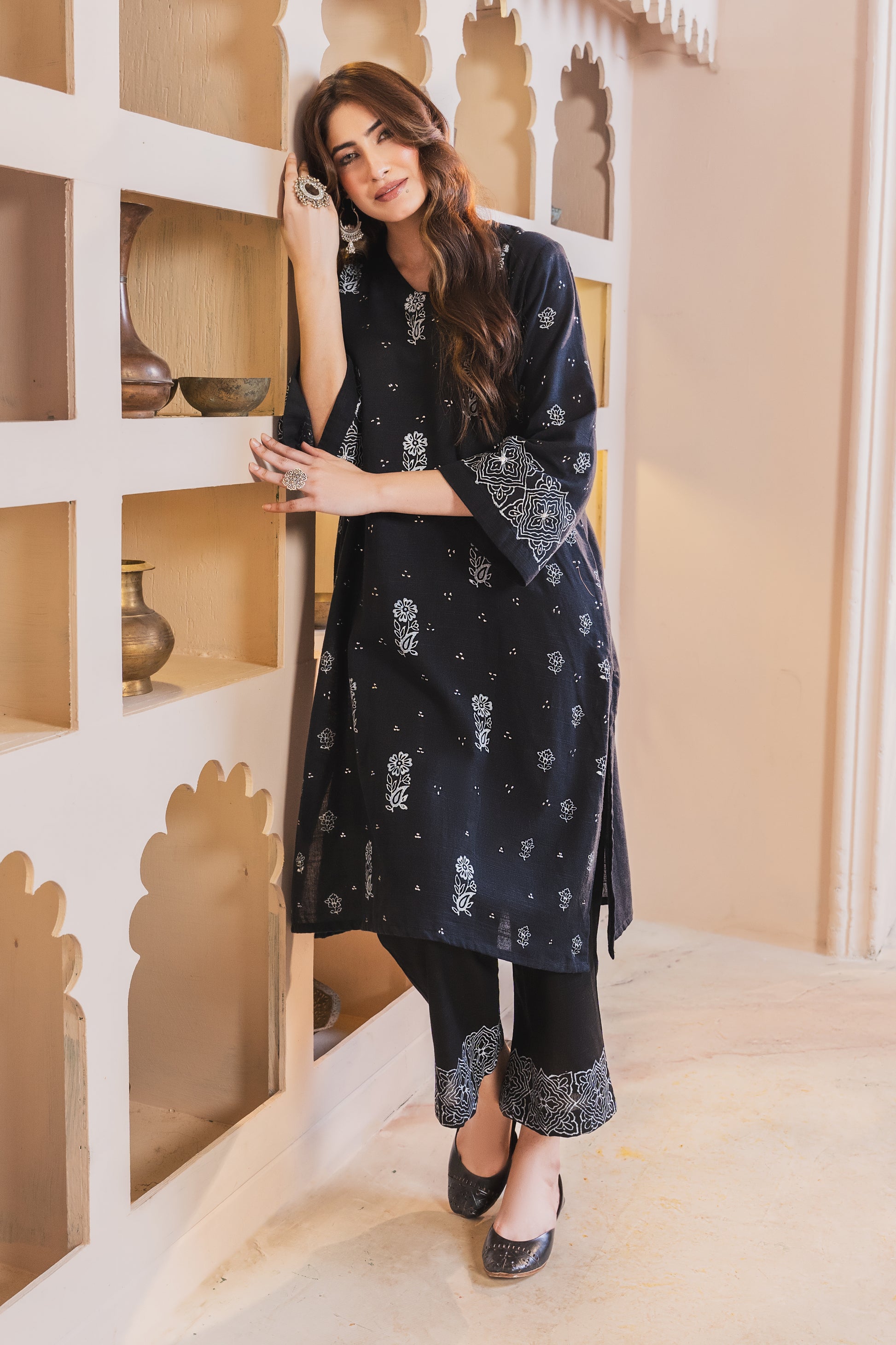 The Black Muki suit, a timeless classic, is a 2-piece ready-to-wear ensemble featuring a black shirt and trousers. It is available in sizes small, medium, and large.