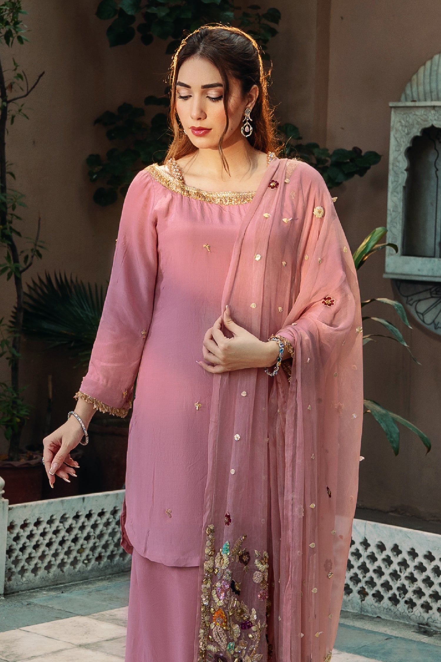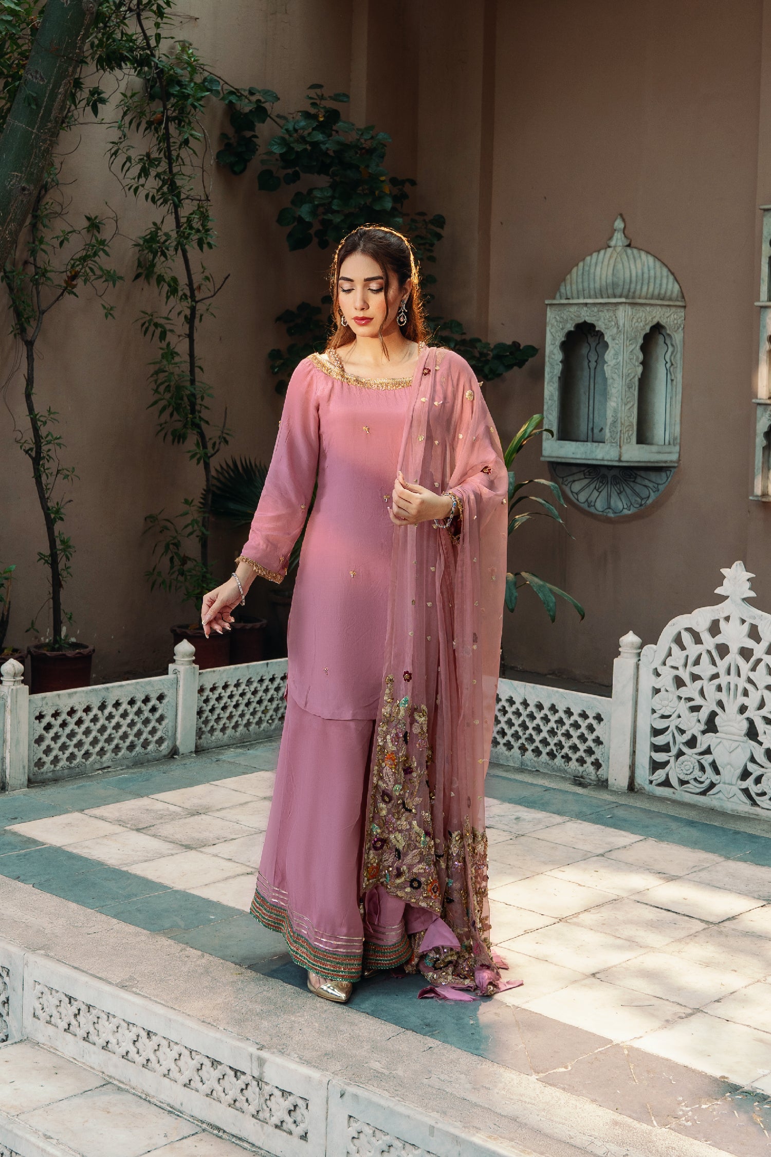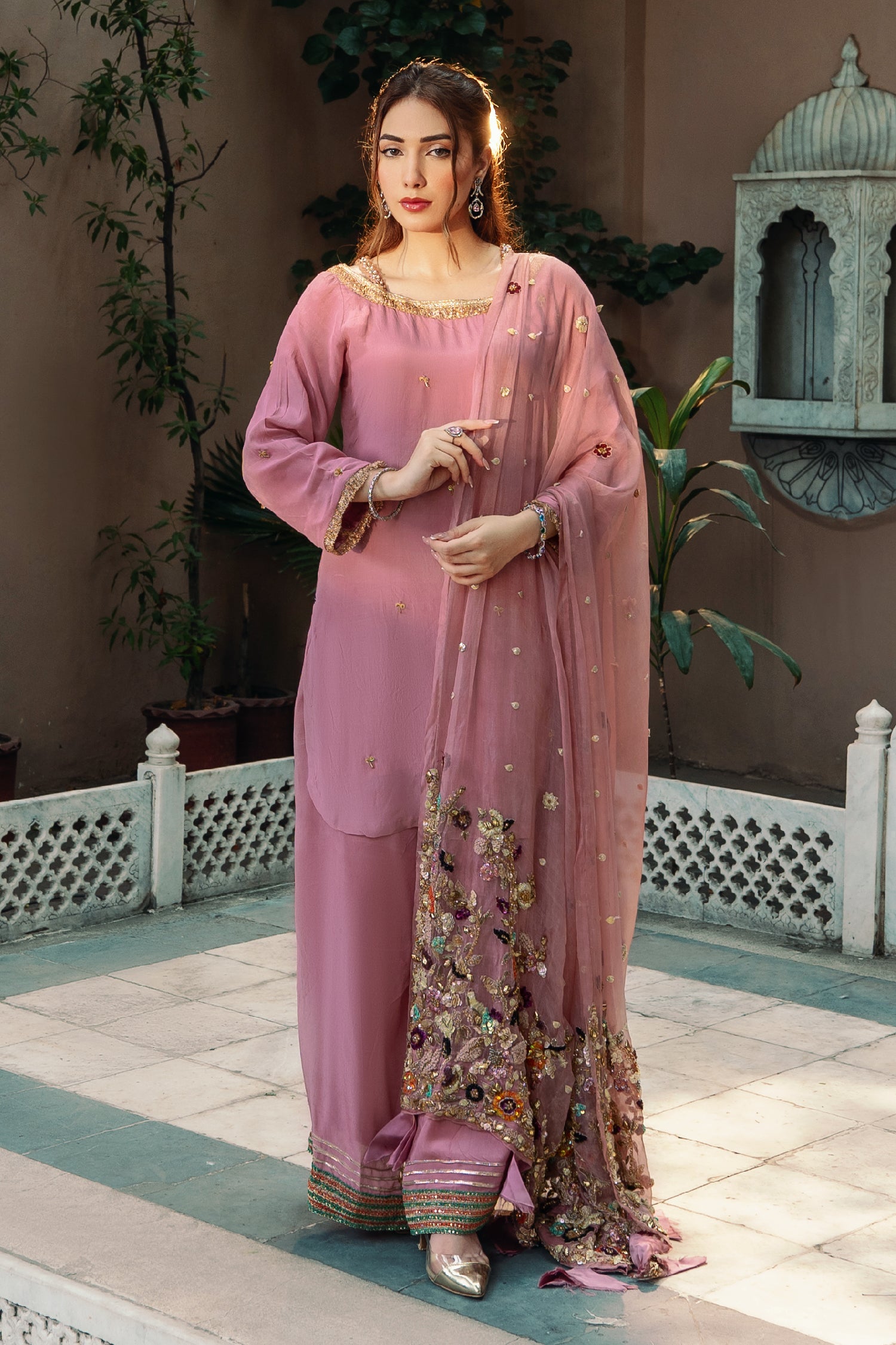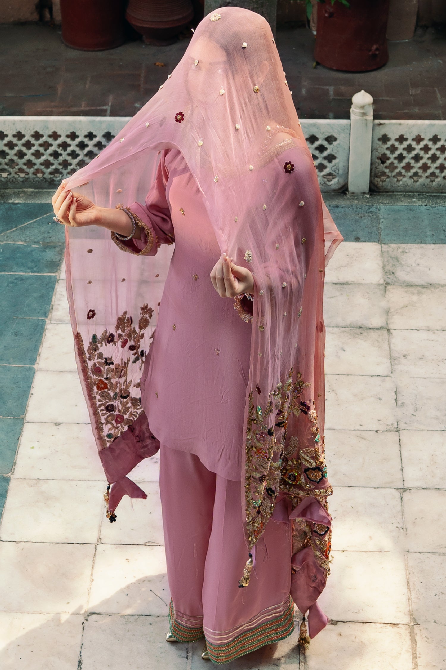Indulge in the luxury of Noori. This unstitched Pure Grip suit features intricate handwork and an Oraganza dupatta. The suit is perfect for special occasions.