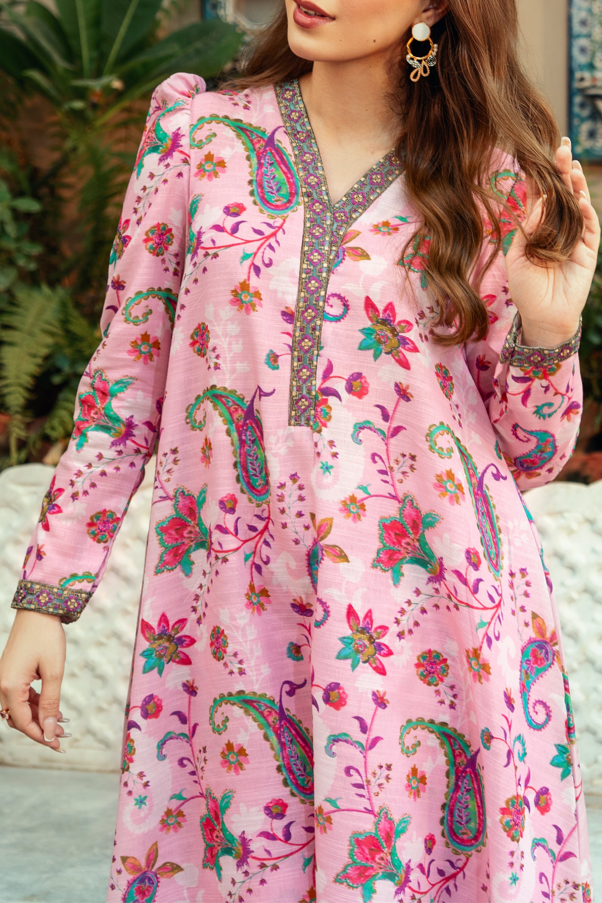 Indulge in the timeless elegance of Pink. This unstitched Khadar suit offers a luxurious feel and versatility. The 2.85-meter shirt and 2.5-meter trouser allow you to create your desired look.