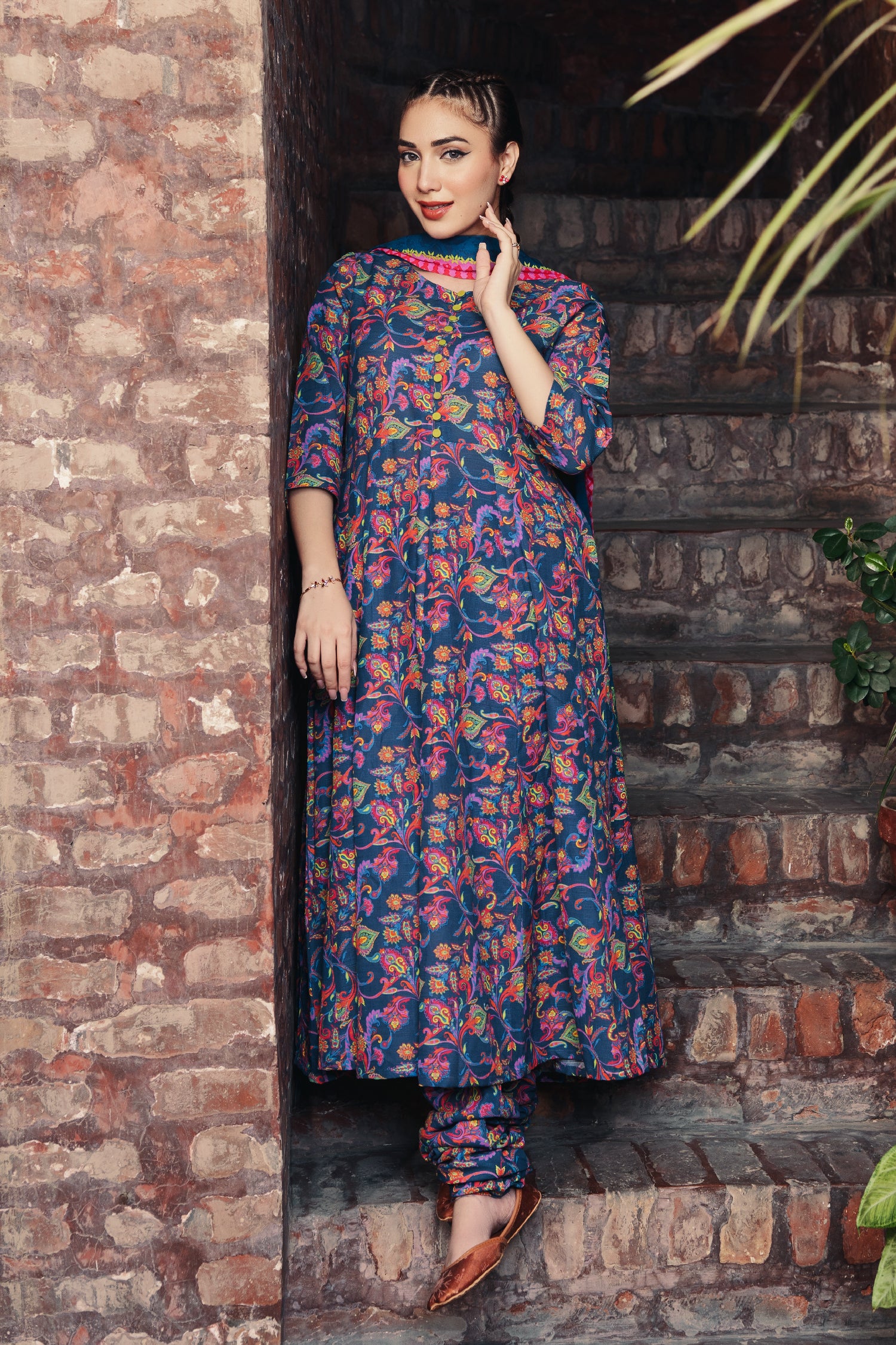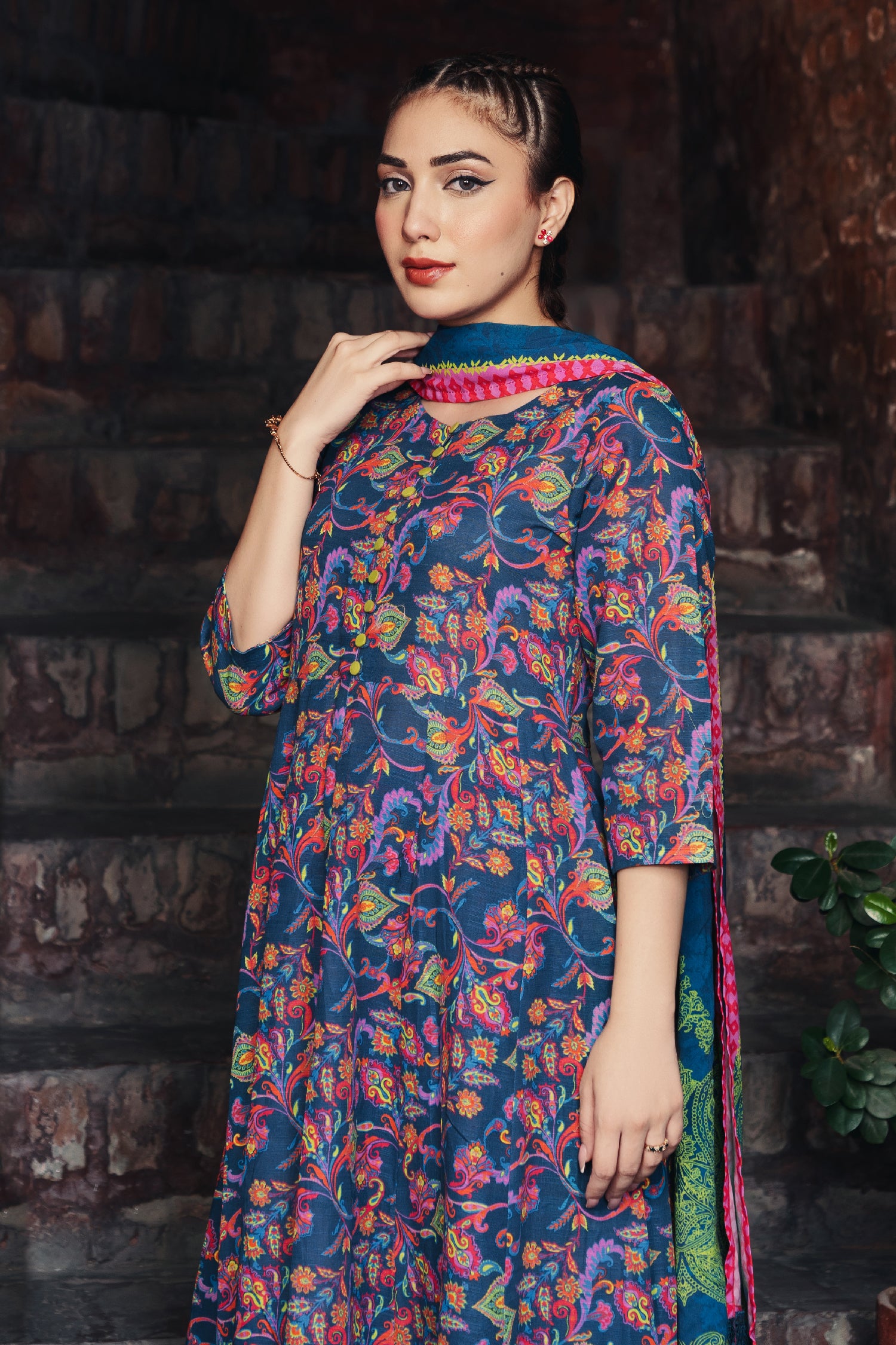 Experience the elegance of Rang e Ara. This unstitched Khadar suit features a printed pattern. The 2.85-meter shirt and 2.5-meter trouser offer versatility for any occasion.