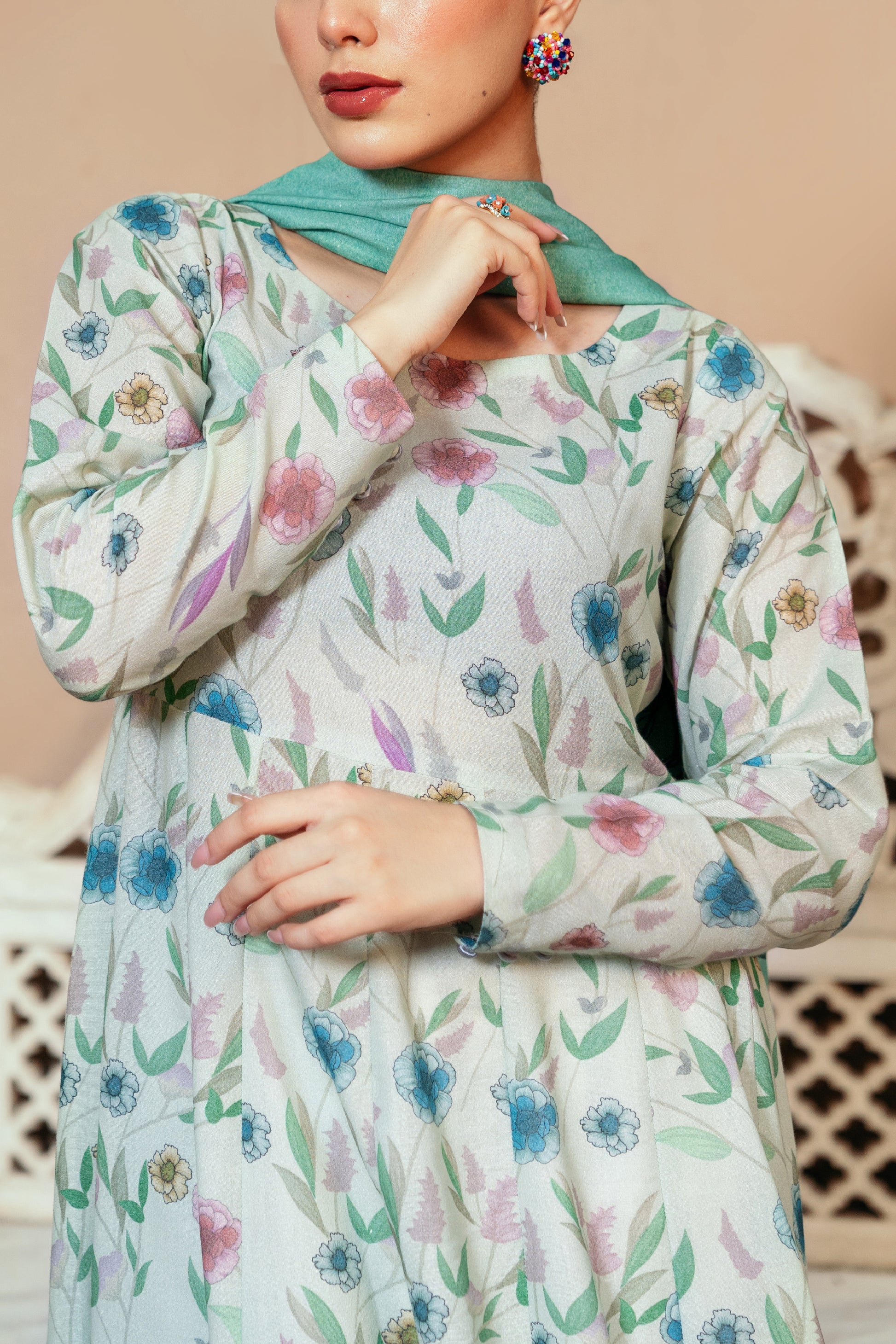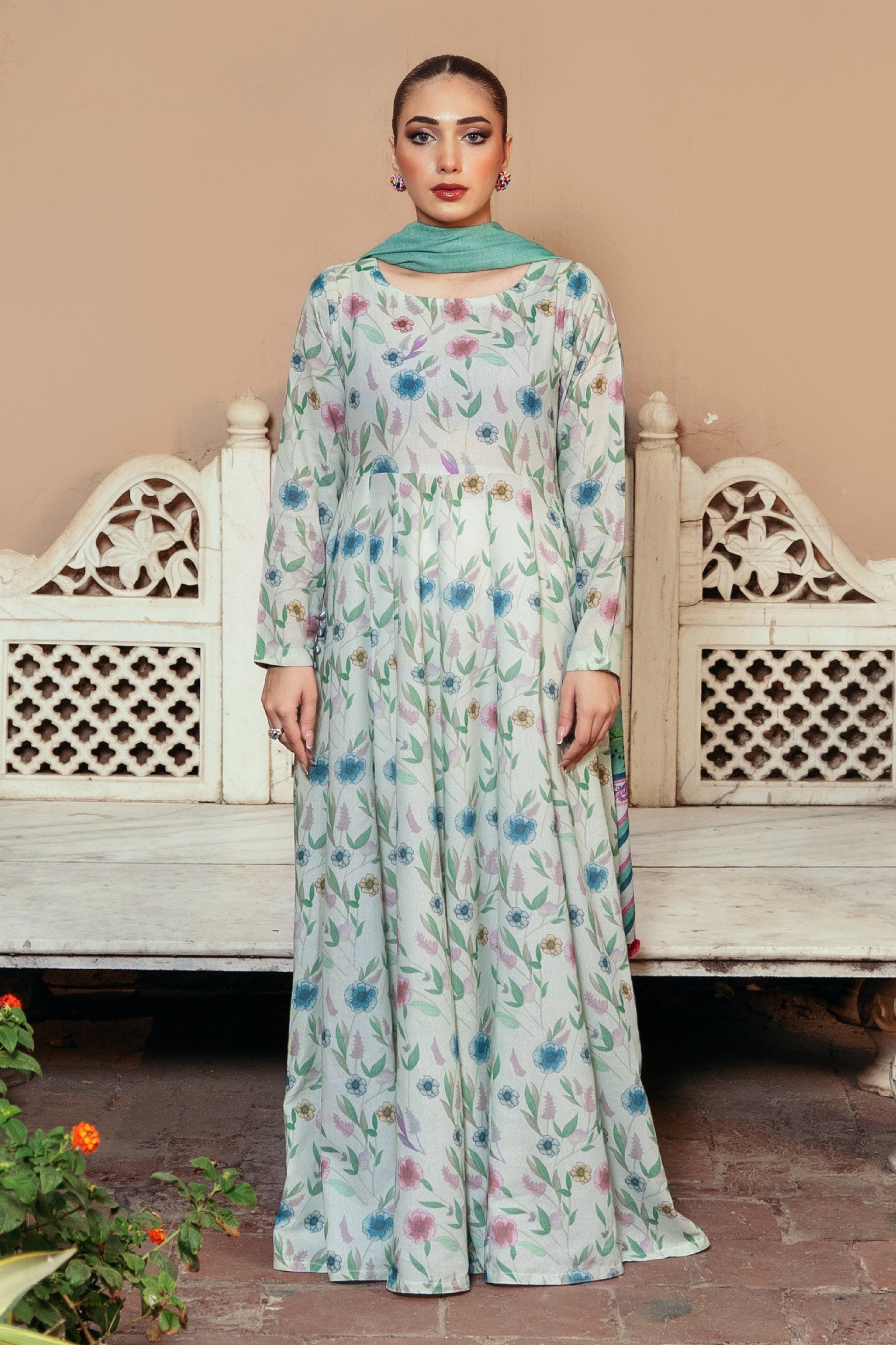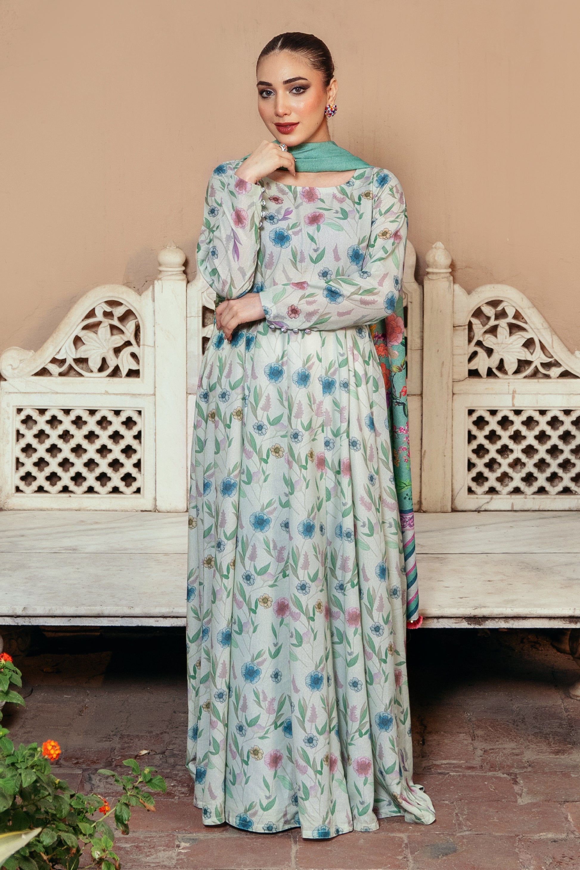 Indulge in the luxury of Rang e Noor. This three-piece unstitched Karandi suit features a printed dupatta. The 2.85-meter shirt, 2.5-meter trouser, and 2.5-meter dupatta allow you to create your desired look.